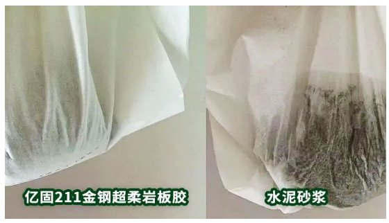 億固211金鋼超柔巖板膠的超強保水性,一方面可以避免因為氣溫高、墻體吸水性太強導致瓷磚膠水分流失過快,確保瓷磚膠有足夠的水分來達到足夠的強度。