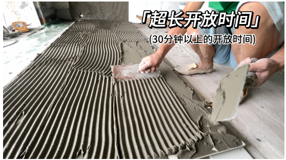 針對大板鋪貼的施工難度,億固211金鋼超柔巖板膠開放時間可達30分鐘,是普通瓷磚膠可操作時間的1.5倍。為工人提供更多檢查和鋪貼的時間,也進一步提升了大板鋪貼的安全性。