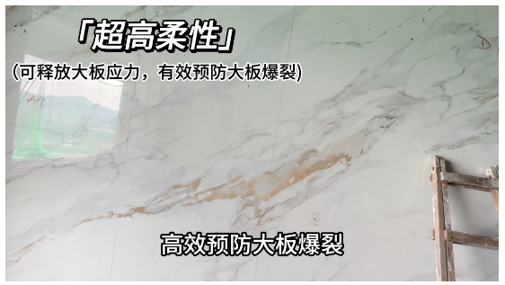 產品具有超高的柔性和抗滑移能力,能吸收陶瓷大板與基層材料因膨脹系數不同而產生的形變,有效釋放大板應力,更好地適應因季節變化、猛烈撞擊等原因導致基層形變而帶來的脫落空鼓現象,完美解決大板后期開裂問題。